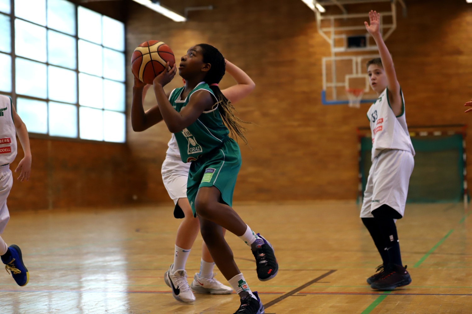 Im zweiten Viertel zeigten wir, dass wir uns nicht leicht ergeben lassen und durch starken Teamspiel aber auch 1 gegen 1 Aktionen konnten wir leichte Punkte machen.